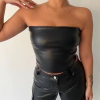 Top bandeau, strapless, sin mangas. Cierre lateral.
