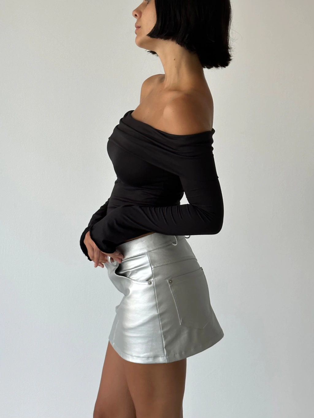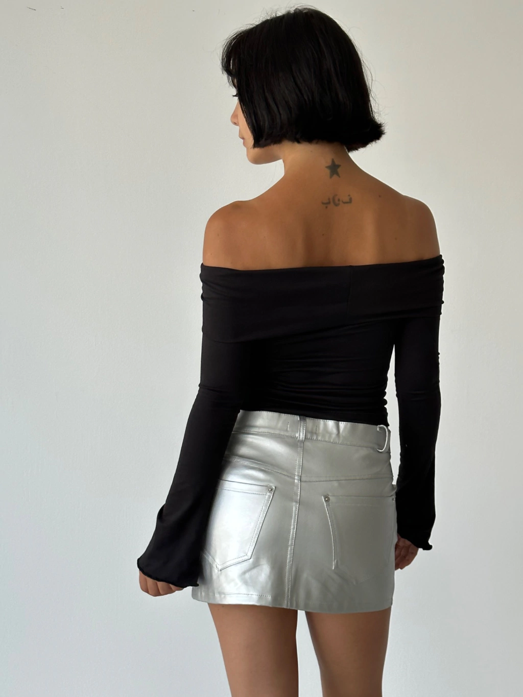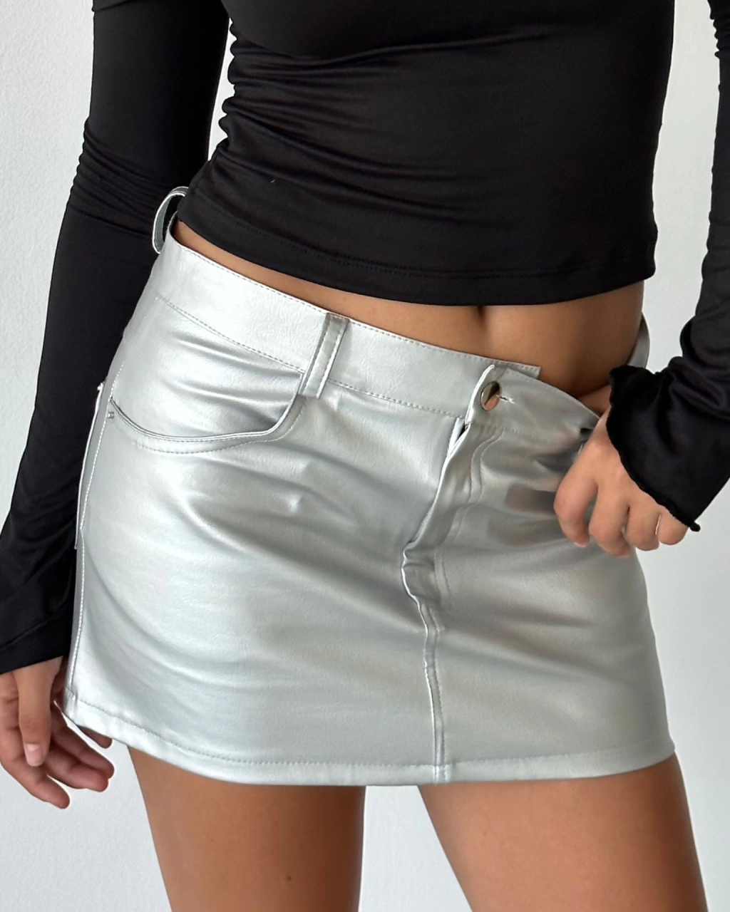 Mini skirt eco cuero. 4 bolsillos. Botones metálicos.