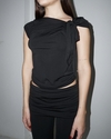 Remera con manguitas. Frunce a los costados. Detalle de lazo incorporado sobre un hombro.